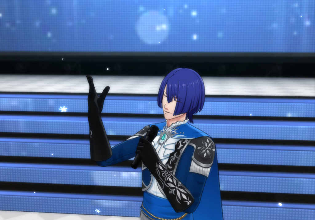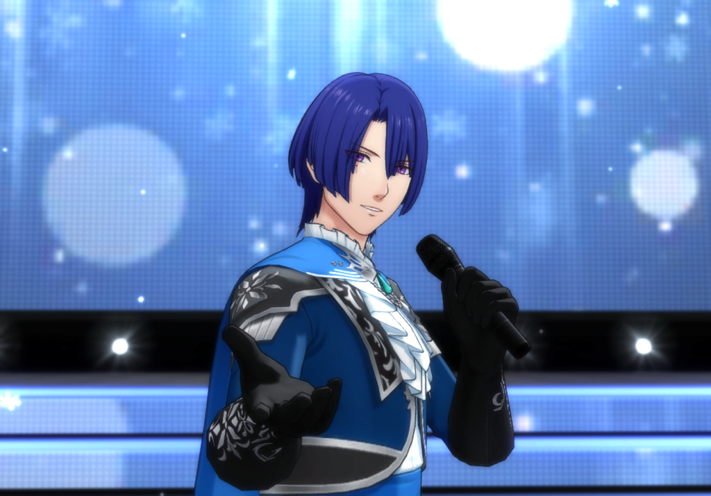 この服騎士っぽさがあるし、青を基調とした色が騎士キスのしっとりした曲調と合っててとてもよい。