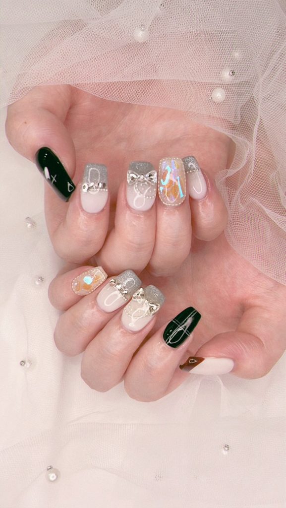 オーバーフロウデザインのネイルがなかったので、自分でデザインしてみた