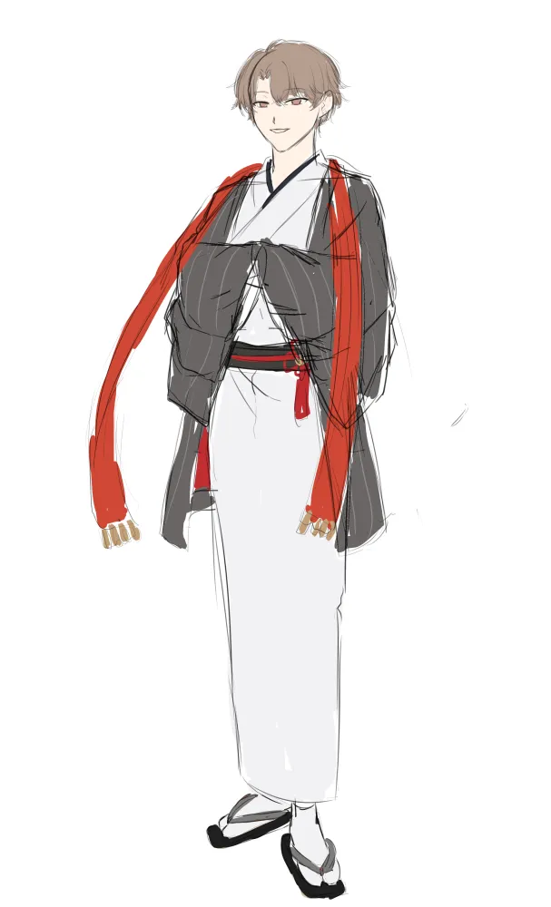 甲斐田くんのデフォルト衣装が袴なので、ギャップ的に着流しにしようかな〜と構想中。甲斐田くんを羽織肩掛けにしようかな。デフォルト衣装、羽織肩掛けだもんね。