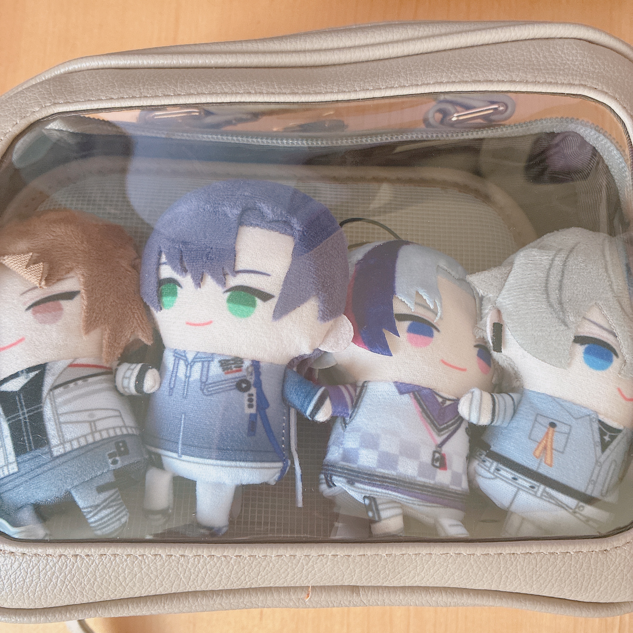 ほんとはアクスタ入れようと思ってたんだけど頭がちょうどカバンの透明部分から見えない位置になり、端から見ると社長の足が長いことしか分からなかったので、やめた。(社長の足は実際長い)